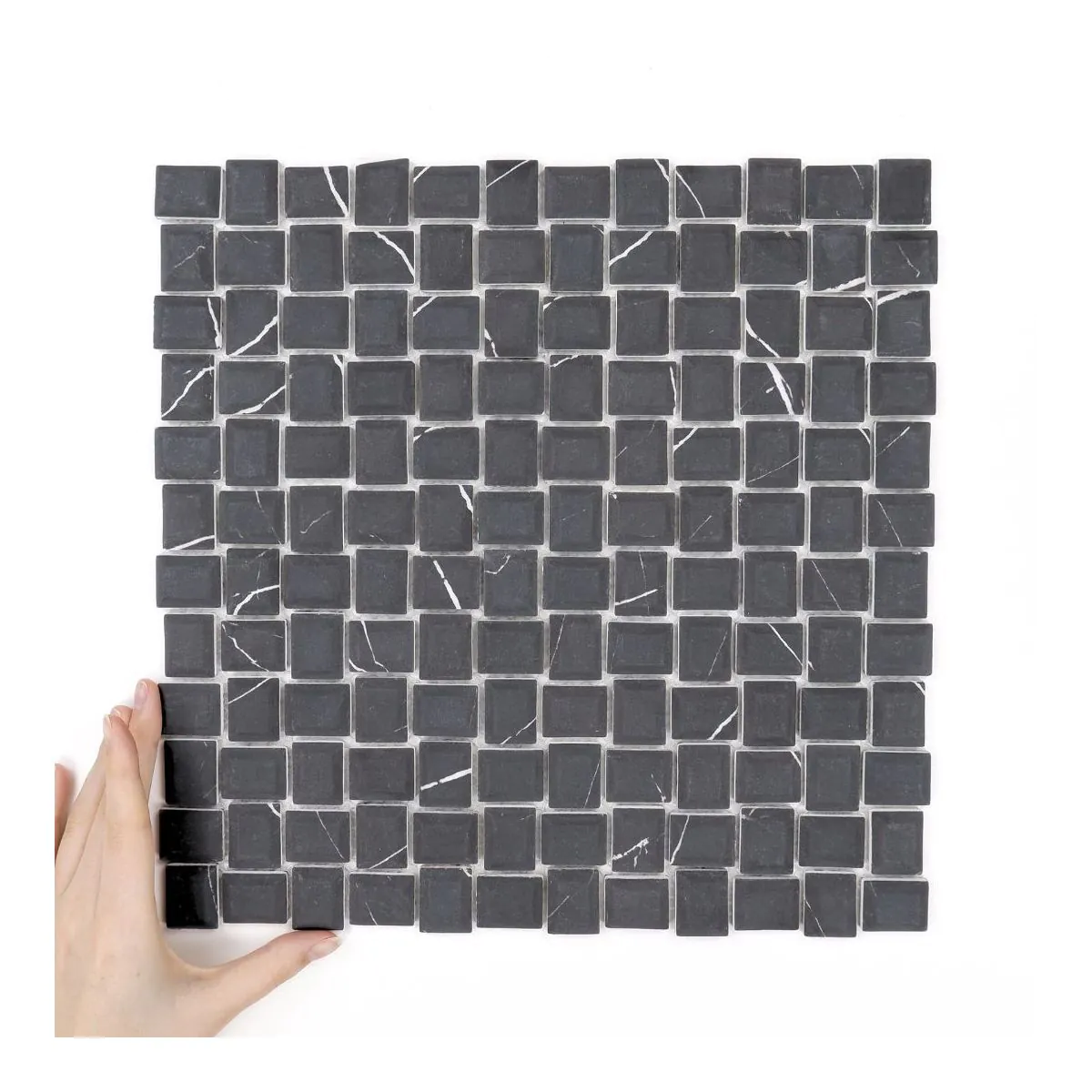 Kolekcja mozaik szklanych to połączenie nowoczesnej estetyki z ideą zrównoważonego designu. Mozaiki o matowym wykończeniu powstają z mielonego szkła pozyskanego z recyklingu, dzięki czemu są nie tylko piękne, ale także przyjazne dla środowiska. Inspiracją dla Cube Marble Nero Matowy była harmonia natury i współczesne potrzeby aranżacyjne, w których design spotyka się z ekologią. Subtelna powierzchnia i delikatne rozproszenie światła sprawiają, że kolekcja doskonale odnajduje się zarówno w minimalistycznych wnętrzach, jak i w bardziej dekoracyjnych przestrzeniach.