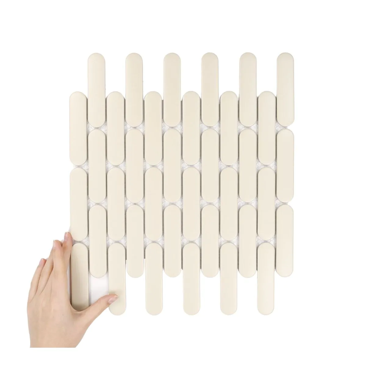 Kolekcja Eclair to wyjątkowa propozycja, która łączy nowoczesny minimalizm z miękką, organiczną formą. Obłe kafelki w kształcie biszkoptów ułożone na arkuszach tworzą subtelny, a zarazem efektowny rytm, nadając wnętrzu lekkości i oryginalności. Inspiracją dla Eclair Cherie Cream Matowy były naturalne, zaokrąglone kształty oraz wzory z nurtu mid-century, które dziś wracają w nowoczesnych aranżacjach jako wyraz ponadczasowego stylu. Nietypowa forma i delikatna estetyka sprawiają, że kolekcja doskonale odnajduje się w aranżacjach pełnych elegancji, a także w odważnych, designerskich projektach.