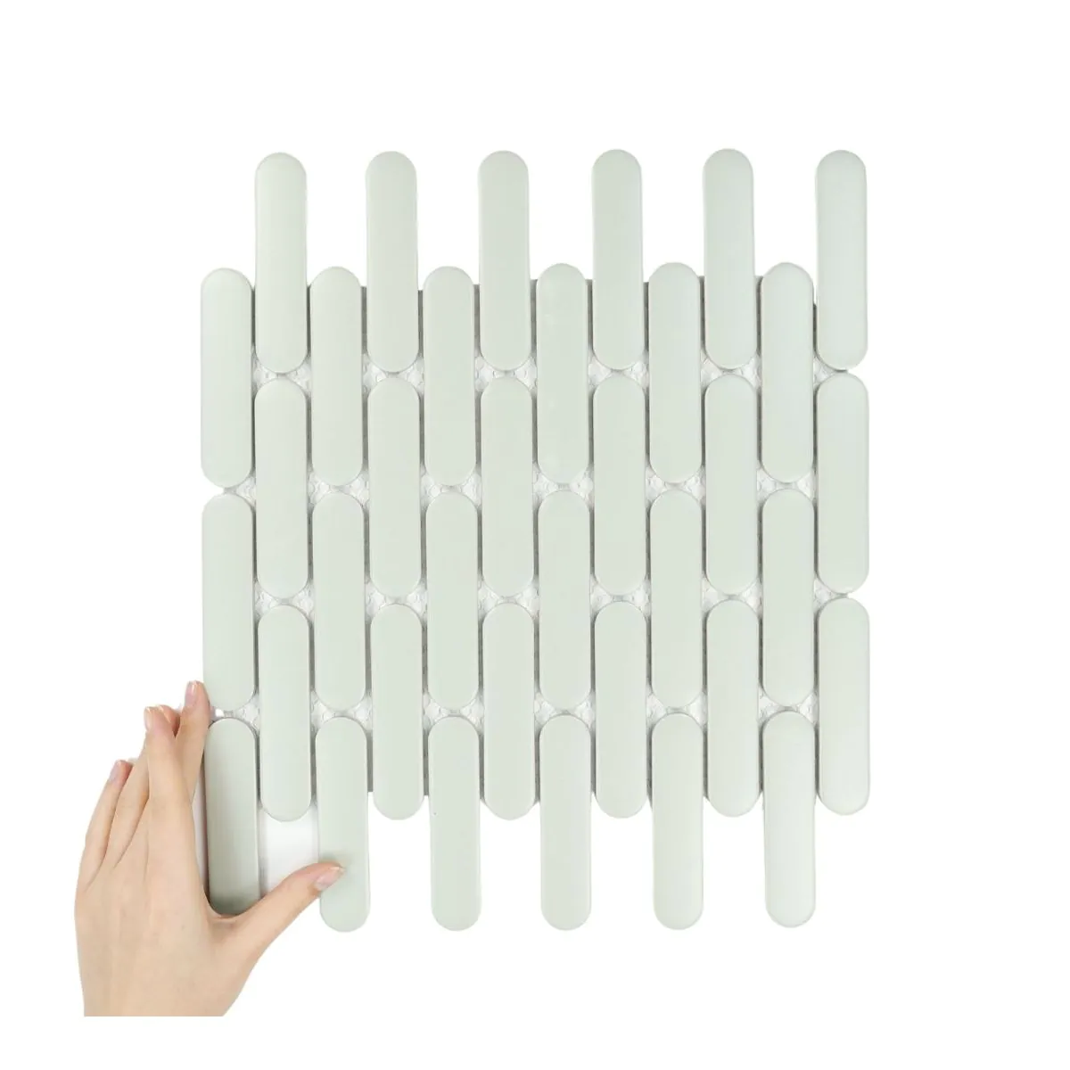 Kolekcja Eclair to wyjątkowa propozycja, która łączy nowoczesny minimalizm z miękką, organiczną formą. Obłe kafelki w kształcie biszkoptów ułożone na arkuszach tworzą subtelny, a zarazem efektowny rytm, nadając wnętrzu lekkości i oryginalności. Inspiracją dla Eclair Cherie Sage Matowy były naturalne, zaokrąglone kształty oraz wzory z nurtu mid-century, które dziś wracają w nowoczesnych aranżacjach jako wyraz ponadczasowego stylu. Nietypowa forma i delikatna estetyka sprawiają, że kolekcja doskonale odnajduje się w aranżacjach pełnych elegancji, a także w odważnych, designerskich projektach.