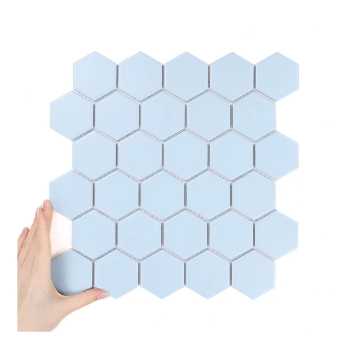 Kolekcja Heksagon to propozycja, która łączy w sobie klasyczną geometrię i nowoczesny styl aranżacji. Regularne, sześciokątne płytki ułożone na arkuszach tworzą spójną i harmonijną całość, a jednocześnie dają ogromne możliwości projektowe. Inspiracją dla Heksagon Duży Błękitny Matowy były naturalne struktury oraz motywy architektoniczne, w których heksagon od wieków symbolizuje porządek i równowagę. Uniwersalna forma i ponadczasowa estetyka sprawiają, że kolekcja świetnie wpisuje się zarówno w nowoczesne, jak i bardziej klasyczne wnętrza.