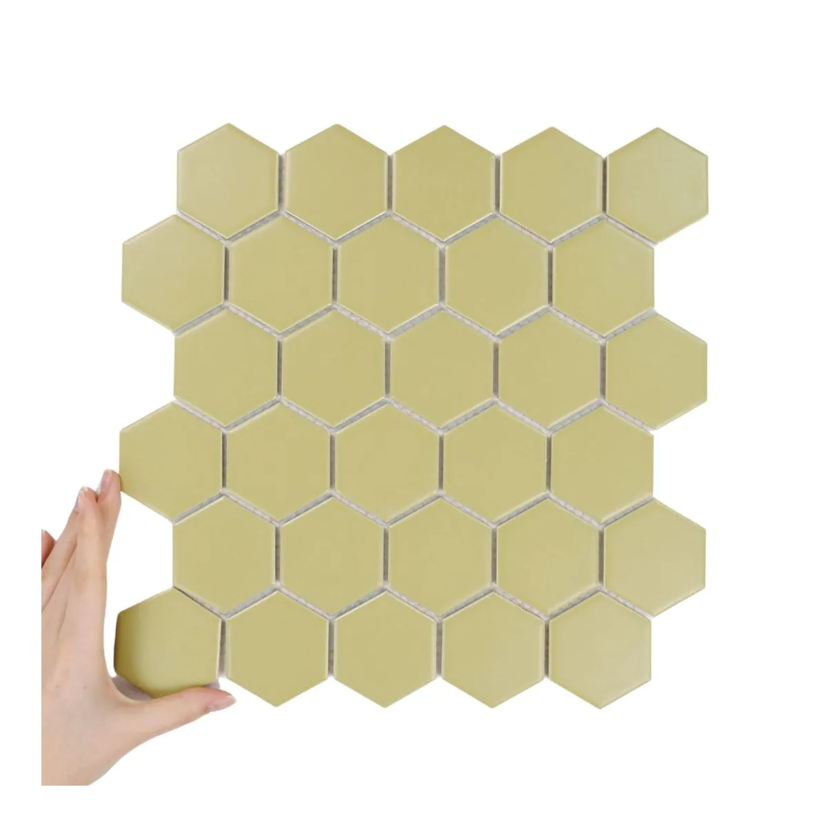 Kolekcja Heksagon to propozycja, która łączy w sobie klasyczną geometrię i nowoczesny styl aranżacji. Regularne, sześciokątne płytki ułożone na arkuszach tworzą spójną i harmonijną całość, a jednocześnie dają ogromne możliwości projektowe. Inspiracją dla Heksagon Duży Golden Olive Matowy były naturalne struktury oraz motywy architektoniczne, w których heksagon od wieków symbolizuje porządek i równowagę. Uniwersalna forma i ponadczasowa estetyka sprawiają, że kolekcja świetnie wpisuje się zarówno w nowoczesne, jak i bardziej klasyczne wnętrza.